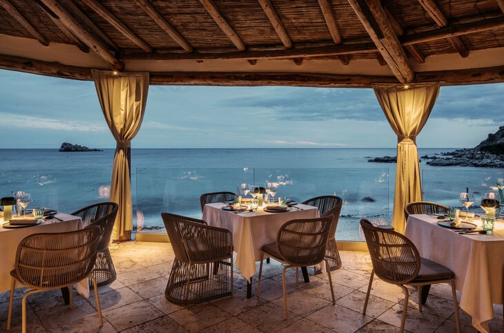 Artigiani Restaurant & Terrace – Hauptrestaurant für Halbpension: Vom genussreichen Frühstück bis hin zum geschmackvollen Abendessen – hier erwarten Sie frische und lokale Produkte, den ganzen Tag lang. Geniessen Sie morgens auf der Terrasse den wunderbaren Ausblick auf das Meer, während Sie sich das umfangreiche Angebot an süssen und herzhaften Köstlichkeiten vom reichhaltigen Buffet schmecken lassen. Vitaminreiche Säfte und frisch zubereitete Gerichte runden Ihr Frühstückserlebnis ab. Das Abendbuffet basiert auf den allseits beliebten Gerichten der mediterranen und sardischen Küchentradition, einschließlich frisch gegrillten Fisches und hochwertiger regionaler Fleischsorten.