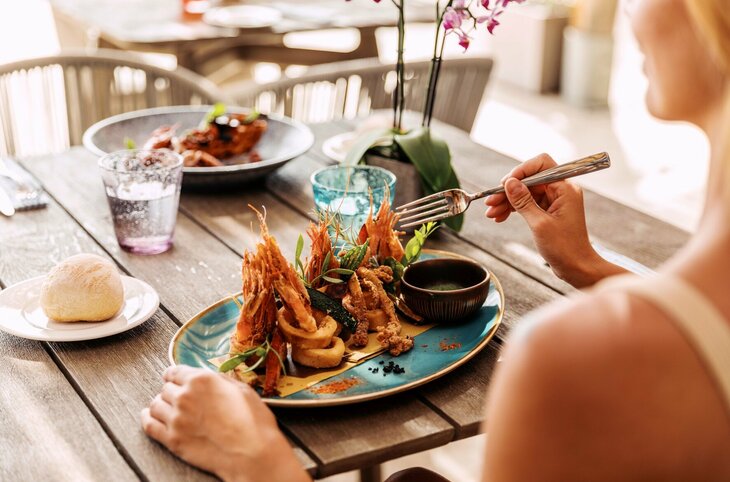 Sudoki Raw, Bar & More – a la carte Bar/Restaurant, extra zu zahlen: Unsere Bar mit besonderem Twist: Indoors servieren wir kulinarische Köstlichkeiten aus Japan, während wir Sie auf der Terrasse mit den besten Cocktailkreationen verführen. Hier ist nicht nur die Aussicht auf das kristallklare Meer ein Highlight - die Bar bietet zudem ein erlesenes Angebot an kulinarischen Delikatessen wie Sushi, Nigiri, Tempura und Ceviche sowie hochwertige alkoholische und alkoholfreie Drinks. Genießen Sie besondere Momente - vom Aperitif bis zu After-Dinner Drinks - bis spät in die Nacht.