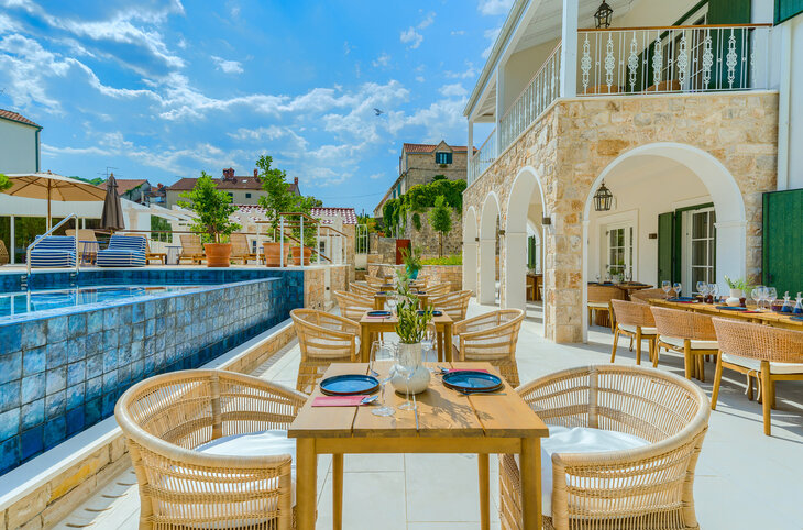 Im malerischen Ort Postira erwartet Sie dieses stilvolle Boutique-Hotel, das nach einer kompletten Renovierung in neuem Glanz erstrahlt. Das Haus begeistert mit der Professionalität und Herzlichkeit des Personals, einem geschmackvoll angelegten Poolbereich sowie großzügigen, modern gestalteten Zimmern.