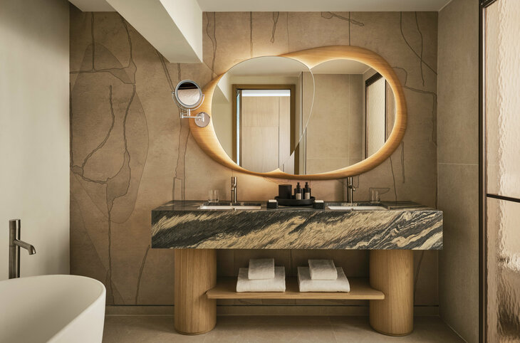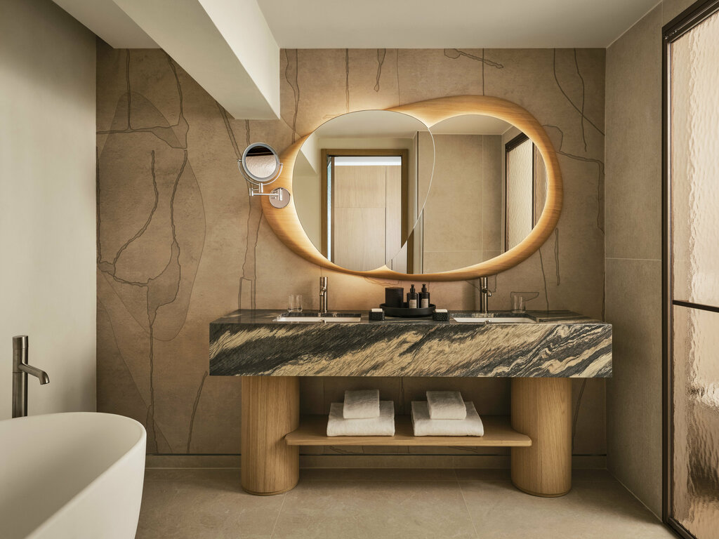 Eingebettet in die spektakuläre Felslandschaft von Poltu Quatu – dem „versteckten Hafen“ – verbindet das W Sardinia modernstes Design mit der natürlichen Energie Sardiniens. Das Resort liegt am eleganten Yachthafen, umgeben von türkisfarbenem Wasser, Granitklippen und einer beeindruckenden Kulisse, die sofort den Zauber der Costa Smeralda spürbar macht. In den lichtdurchfluteten Innenräumen dominieren warme Naturtöne, organische Materialien und moderne Formen, die das mediterrane Flair in eine zeitgemässe Designsprache übersetzen. Hier treffen stylischer Lifestyle, entspannte Vibes und die Schönheit Sardiniens aufeinander – von Sonnenaufgang bis Sonnenuntergang.